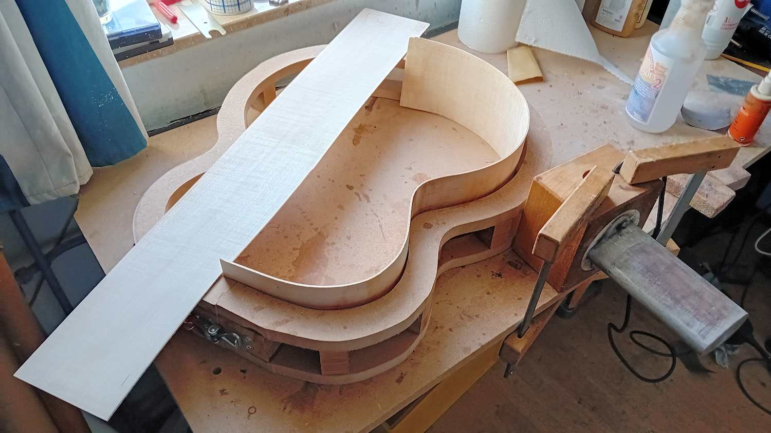 slaggitarist, met een vrij smalle hals en een 12" bolle toets.