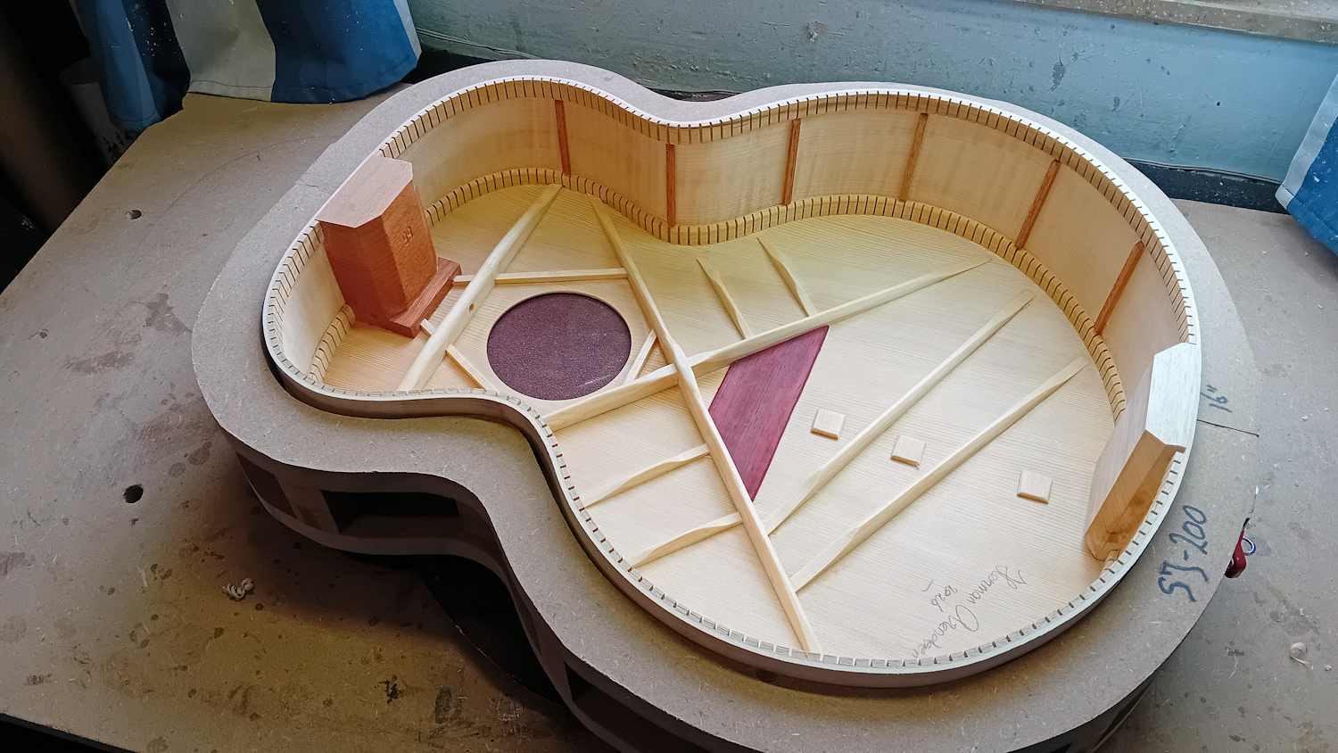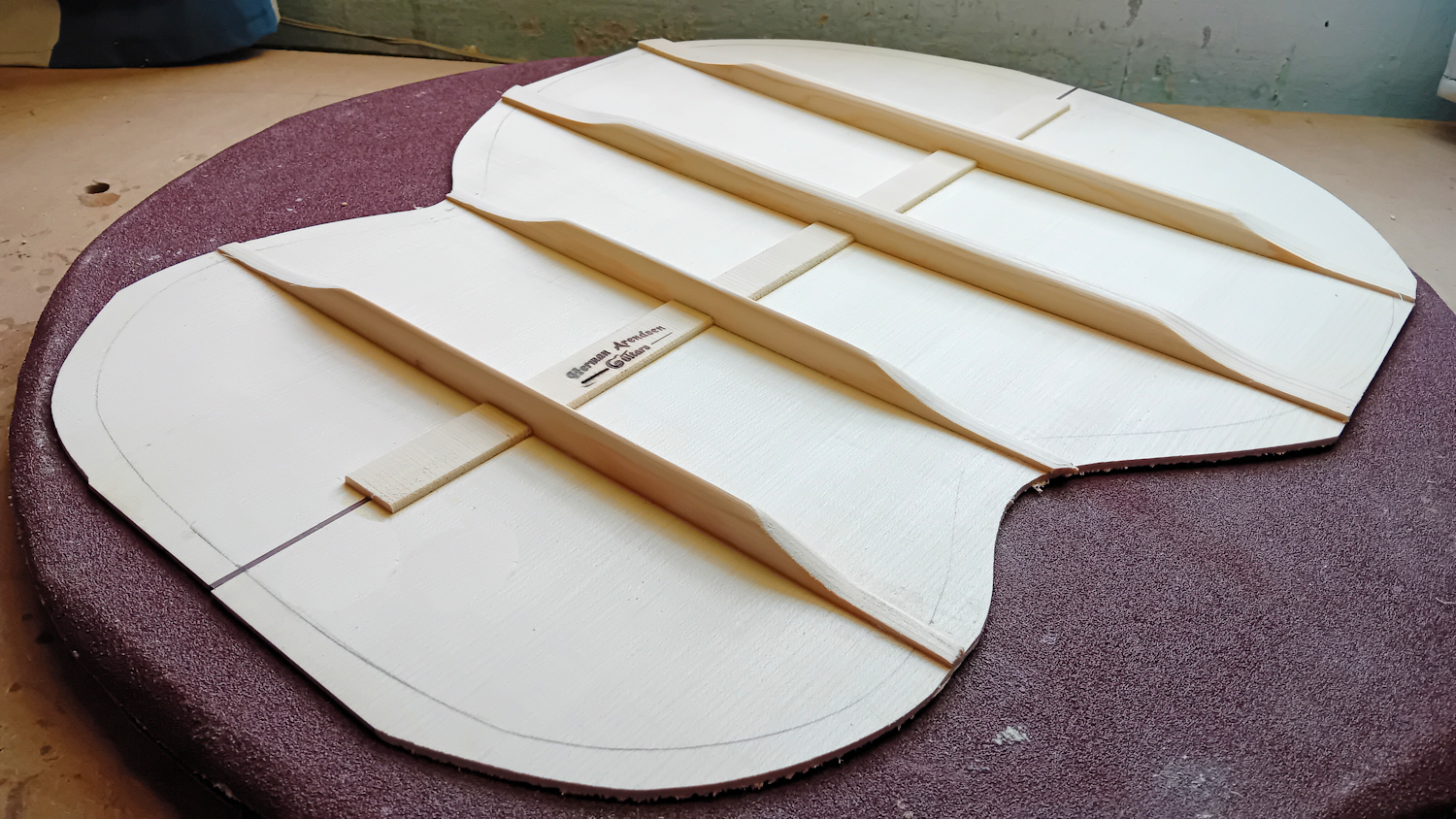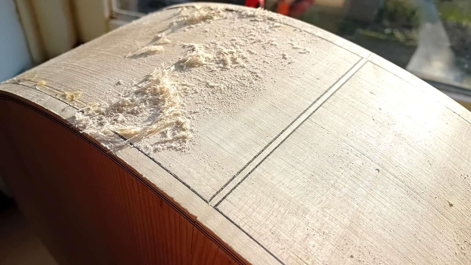 "boomy-ness" van dit soort grote gitaren compenseert. Het dennenhout